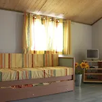 Neben den Annehmlichkeiten für Selbstversorger wie einer voll ausgestatteten Küchenzeile bietet diese Villa auch einen Essbereich. Es gibt auch einen Kühlschrank und Küchenutensilien in der Küche.